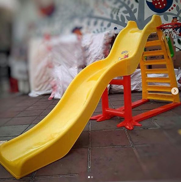 سرسره 7 پله فرینا دارای 2 دسته در کنار آن می باشد تا کودک برای بالا رفتن از پله ها از آن ها کمک بگیرد و تعادل خود را حفظ کند.همچنین یک حلقه بسکتبال کنار آن نصب شده تا کودکان را به تکاپو بیاندازد.